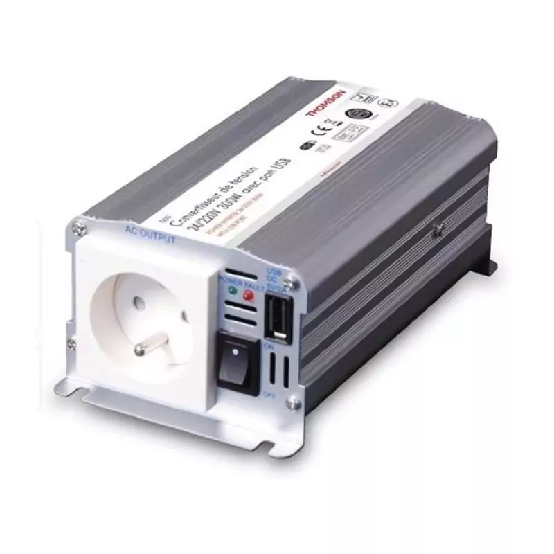 Le convertisseur de tension THOMSON est un appareil puissant et fiable qui vous permet de convertir la tension de 24V à 220V avec une capacité de 300W. Ce convertisseur est doté d'une prise USB intégrée, ce qui le rend encore plus polyvalent et pratique pour charger vos appareils électroniques en déplacement.