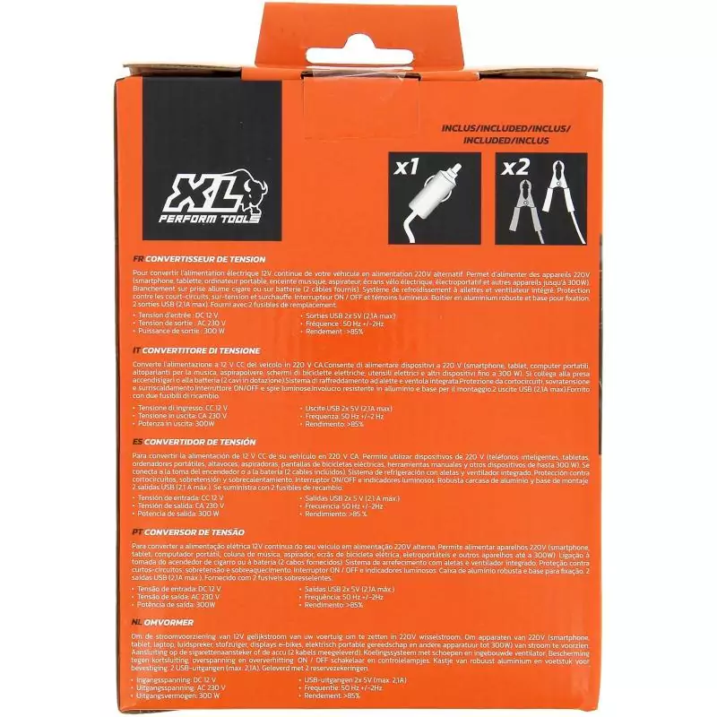 Convertisseur - XL PERFORM TOOLS - 12V-230V - 300 W - 2 fusibles inclus - 2 sorties USB