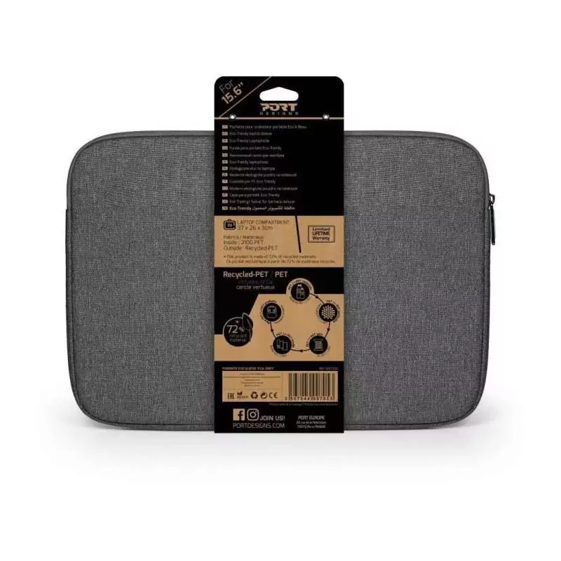 La housse pour ordinateur portable PORT Designs ECO YOSEMITE est l'accessoire parfait pour protéger votre ordinateur portable de 13.3 ou 14 pouces avec style et élégance. Fabriquée en polyester recyclé de haute qualité, cette housse grise offre une protection optimale contre les chocs, les rayures et la poussière.