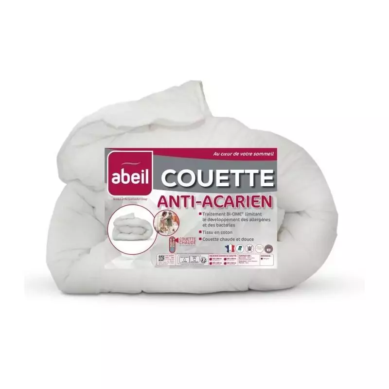 La couette anti-acariens de la marque ABEIL est spécialement conçue pour vous offrir des nuits sereines et confortables. Avec des dimensions de 220 x 240 cm, elle est idéale pour un lit de 2 personnes.