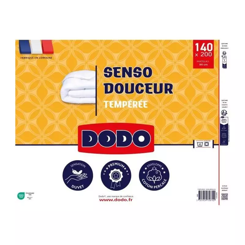 La couette DODO SENSO DOUCEUR est confectionnée avec des matériaux de haute qualité, offrant une sensation de confort incomparable. Son garnissage moelleux assure une agréable sensation de douceur et de chaleur, vous invitant à vous lover sous cette couette pour un sommeil profond et réparateur.