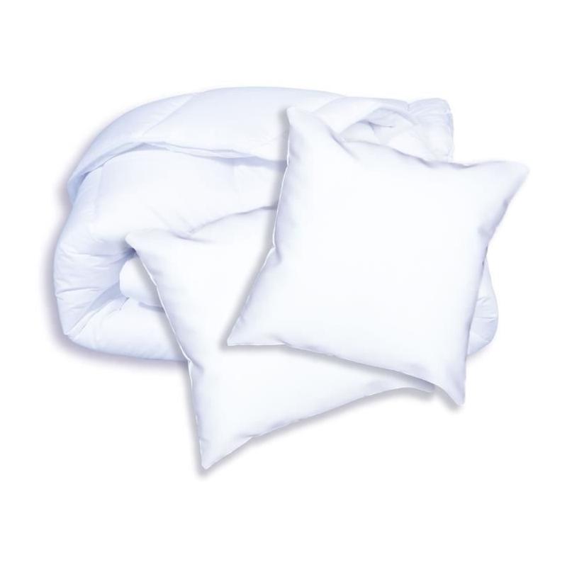 DODO Pack Couette chaude anti-acariens 240x260 cm + 2 oreillers 60x60 cm - Splendeur - Garnissage 100% volupt'air 350gr/m² - Bl