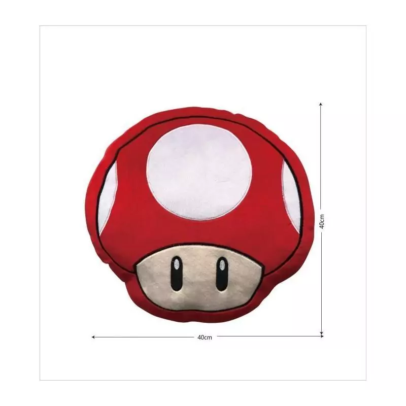 Le Coussin 3D - MARIO BROS - Champignon - Microfibre - 40 cm est un accessoire de décoration ludique et original qui plaira à tous les fans de l'univers coloré de Mario Bros. Fabriqué en microfibre de haute qualité, ce coussin 3D représente un champignon emblématique du jeu vidéo.