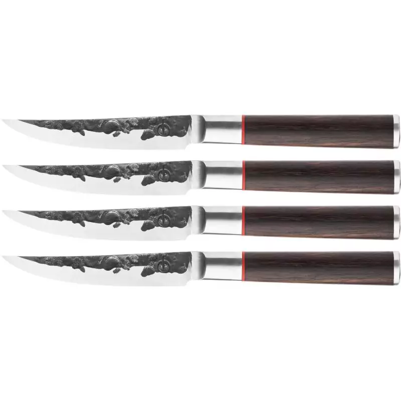 Set de 4 couteaux a steak - FORGED - SEBRA - Acier japonais 440C - Manche en bois Dalbergia
