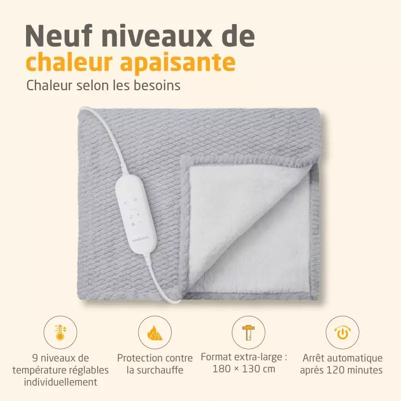 Couverture chauffante reversible - MEDISANA - HB 416 - 120 W - 9 réglages - 180 x 130 cm - Gris