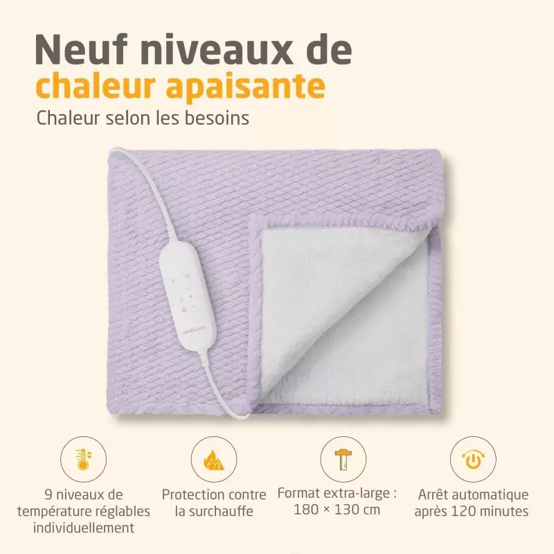 Couverture chauffante reversible - MEDISANA - HB 418 - 120 W - 9 réglages - 180 x 130 cm - Violet