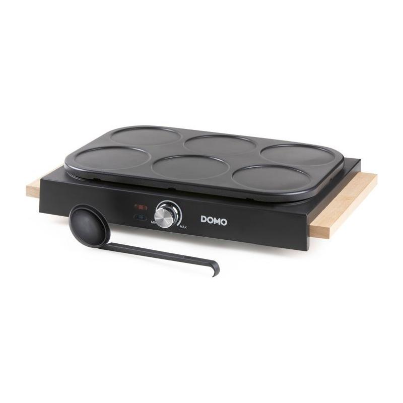 Crepiere - DOMO - DO8717P - 1000 W - Pour 6 crepes de Ø 11,5 cm - Thermostat réglable - Noir / Bois