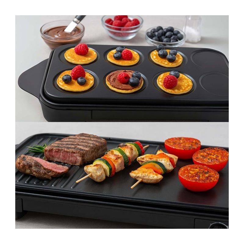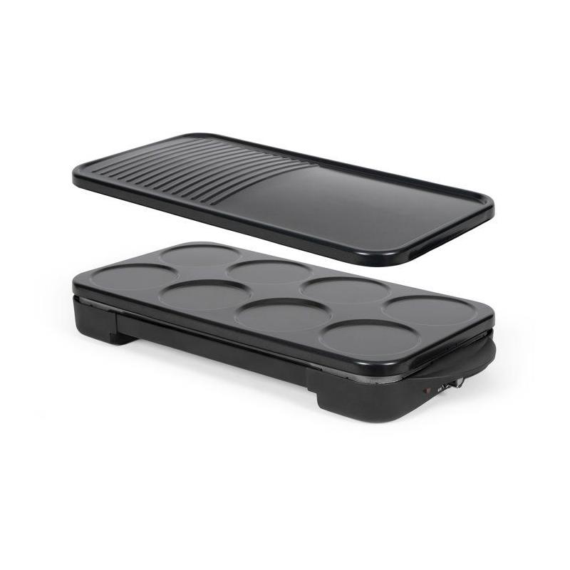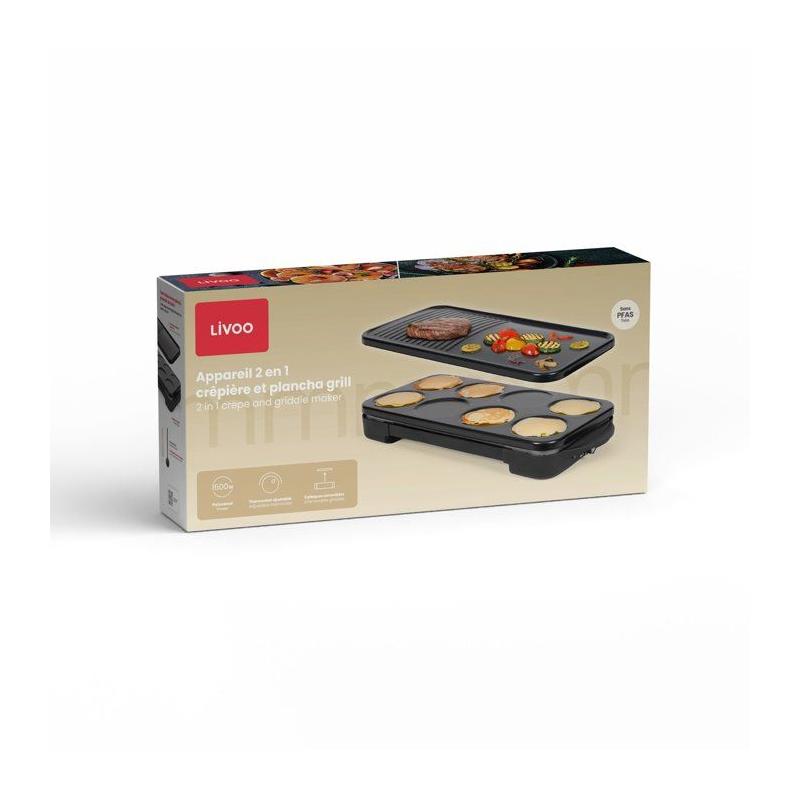 Appareil 2-en-1 crepiere et plancha grill - LIVOO - DOC349N - 1500 W - 8 mini crepes Ø 11,5 cm - Sans PFAS - Noir
