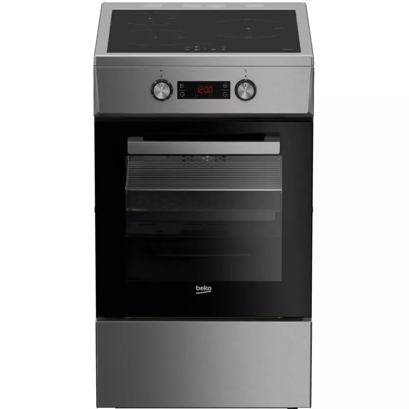 Beko FSM58301XCDT. Type de produit: Cuisinière, Couleur du produit: Noir, Acier inoxydable, Type de commande: Rotatif, Tactile. Type de plaque: Plaque avec zone à induction, Nombre de brûleurs: 3 zone(s), Nombre de zone de cuisine électrique: 3 zone(s). Taille du four: Moyenne, Source d'alimentation du four: Electrique, Capacité nette du four: 60 L. Classe d'efficacité énergétique: A, Consommation d'énergie (conventionnelle): 0,92 kWh, Consommation d'énergie (convection forcée): 0,76 kWh. Largeur: 500 mm, Profondeur: 600 mm, Hauteur: 850 mm
