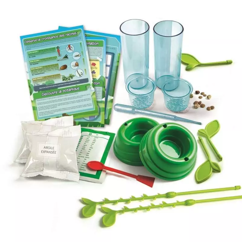 • Un jeu inventif pour expérimenter les techniques de la culture hydroponique. • Avec les récipients en plastique, tu peux cultiver des plantes sans utiliser de terre. Ce coffret contient tout le matériel pour commencer l’expérience ! • Le manuel illustré guide votre enfant vers l’exploration de nouvelles méthodes de culture des plantes.