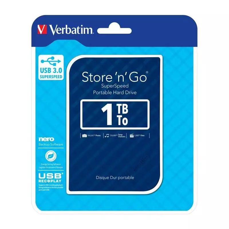 Disque dur externe - VERBATIM - Store'n'go - 1To - Bleu