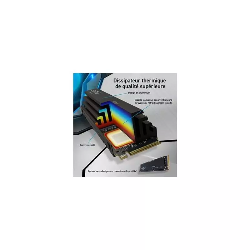 Le Crucial T700 est conçu pour offrir une durabilité exceptionnelle, avec une fiabilité à toute épreuve pour une utilisation quotidienne intensive. Son format compact et son installation facile en font un choix idéal pour mettre à niveau votre système existant ou construire un nouvel ordinateur.