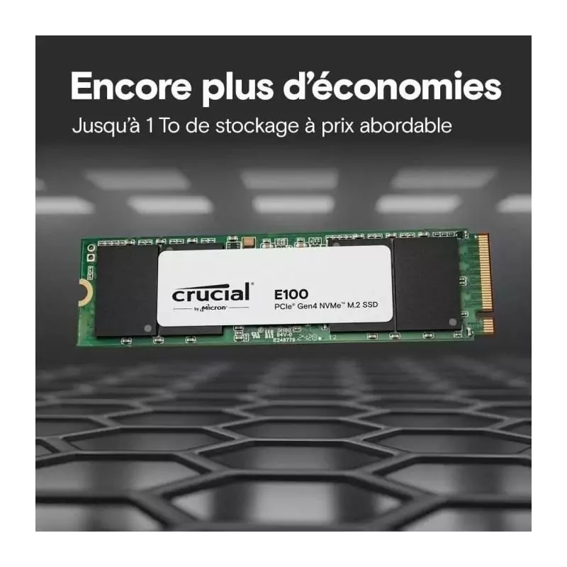 CRUCIAL - Disque SSD - E100 PCIe 4.0 Gen4 2280 NVMe M.2 SSD - 2 To