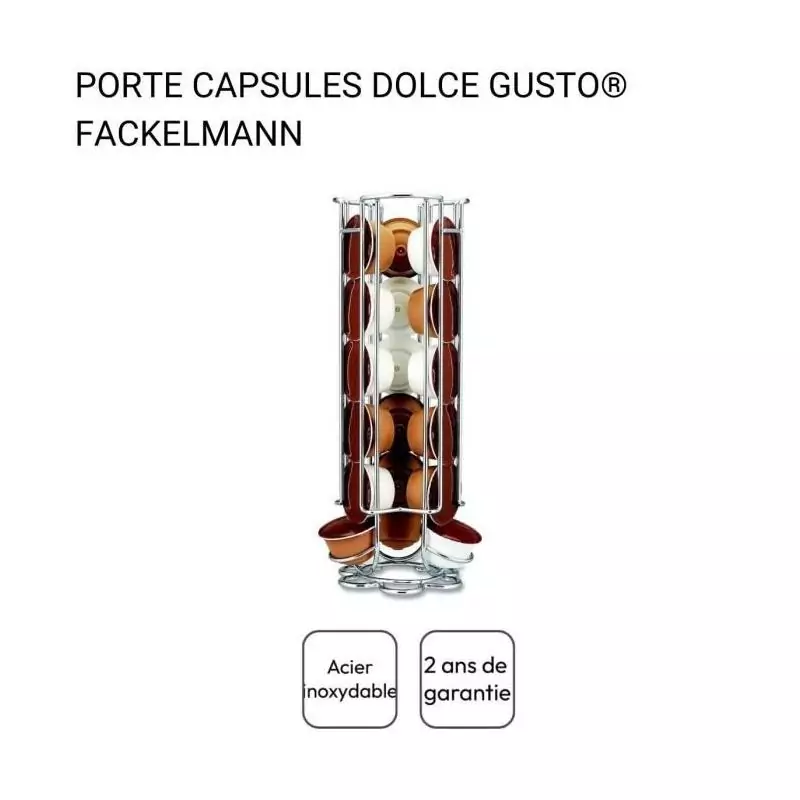 L'ensemble à café FACKELMANN est l'accessoire parfait pour les amateurs de café qui désirent une expérience de dégustation authentique à la maison. Ce set complet comprend un porte capsules compatible avec les machines Dolce Gusto, permettant ainsi de garder vos capsules organisées et à portée de main. Fini le désordre sur le comptoir de la cuisine, grâce à ce rangement pratique et esthétique.
