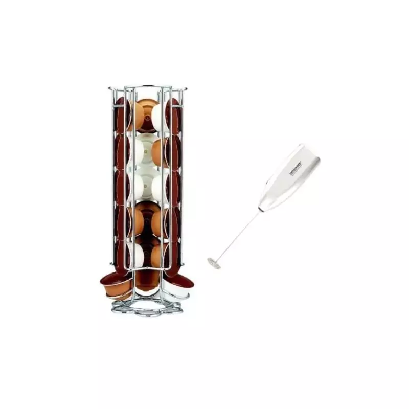 En plus du porte capsules, l'ensemble est équipé d'un mousseur à lait de haute qualité. Ce mousseur vous permet de préparer des cappuccinos, des lattes et d'autres boissons gourmandes en toute simplicité. Obtenez une mousse onctueuse et savoureuse pour sublimer vos café. Grâce à cet accessoire, reproduisez les gestes des baristas professionnels directement chez vous.