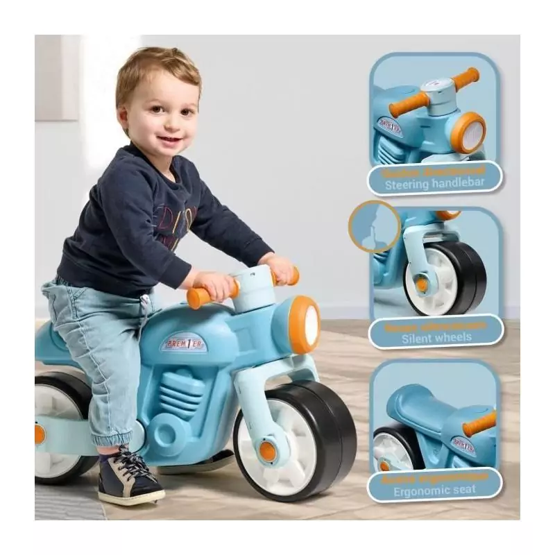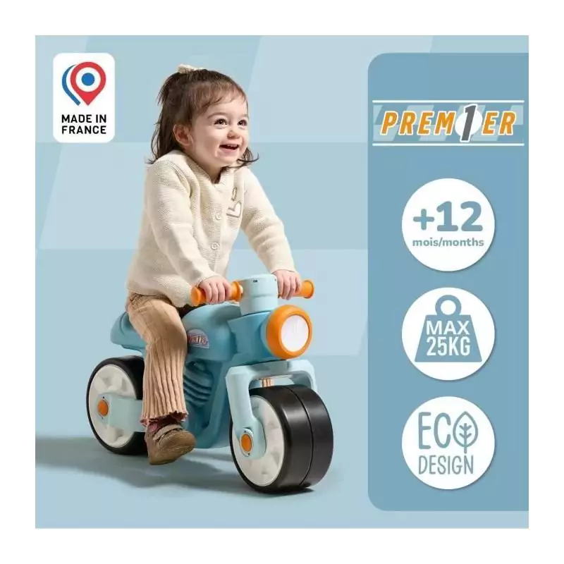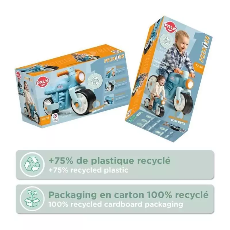 Draisienne Moto Premier - FALK - Avec roues silencieuses - Bleu - 75% Plastique Recyclé - 100% Fabriqué en France - Des 12 mo