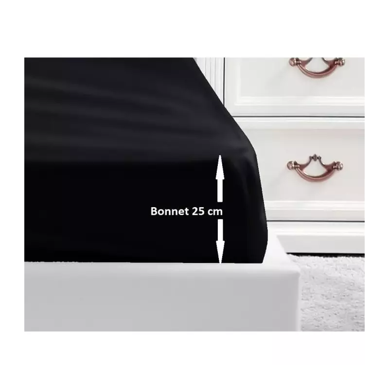 LOVELY HOME Drap Housse 100% coton 180x200x25 cm - Noir