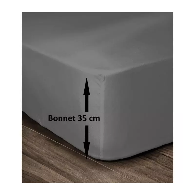 Découvrez le Drap Housse 100% Coton de la marque LOVELY HOME en taille 160x200cm avec un bonnet de 35cm, disponible en couleur gris foncé.