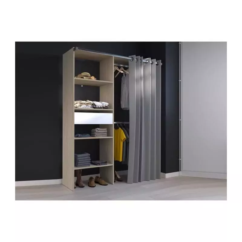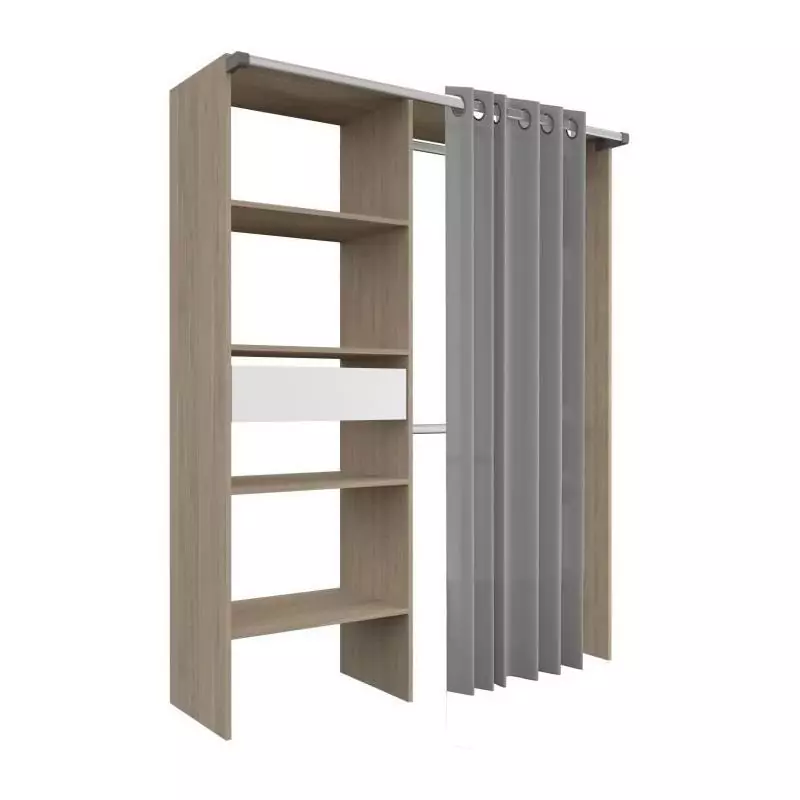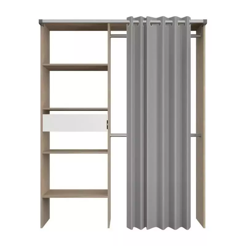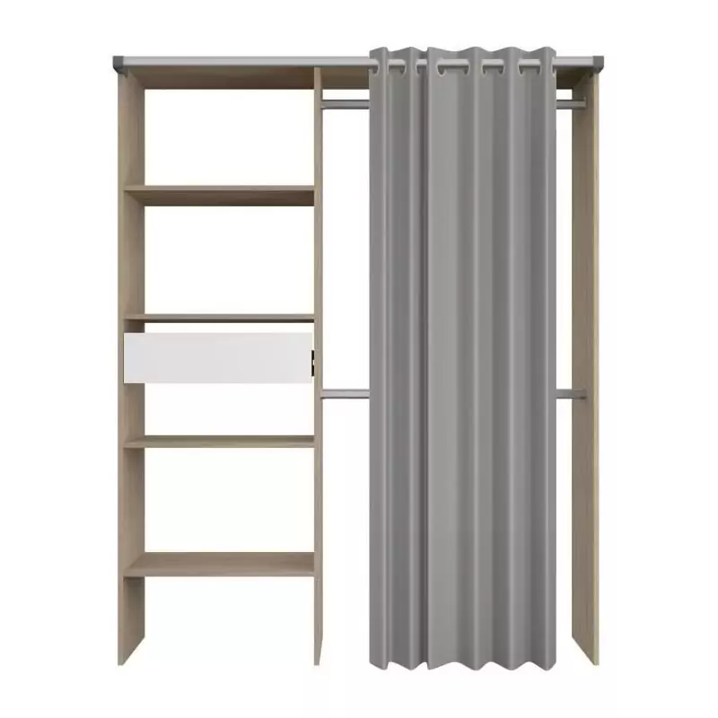 L'un des points forts de ce dressing est son rideau, qui ajoute une touche d'élégance tout en cachant discrètement vos affaires. Vous pouvez facilement ouvrir et fermer le rideau pour accéder à vos vêtements en toute simplicité.