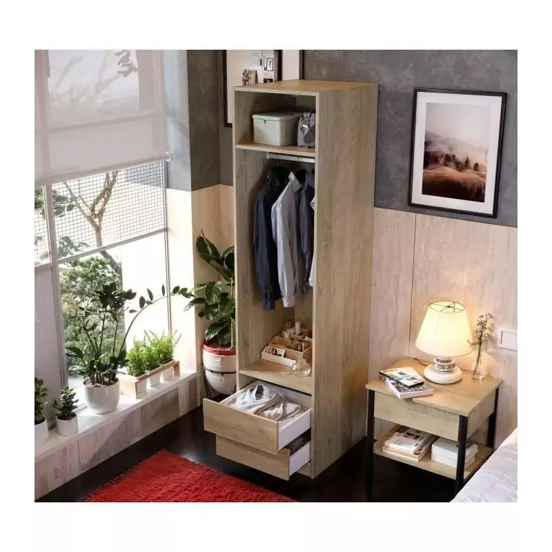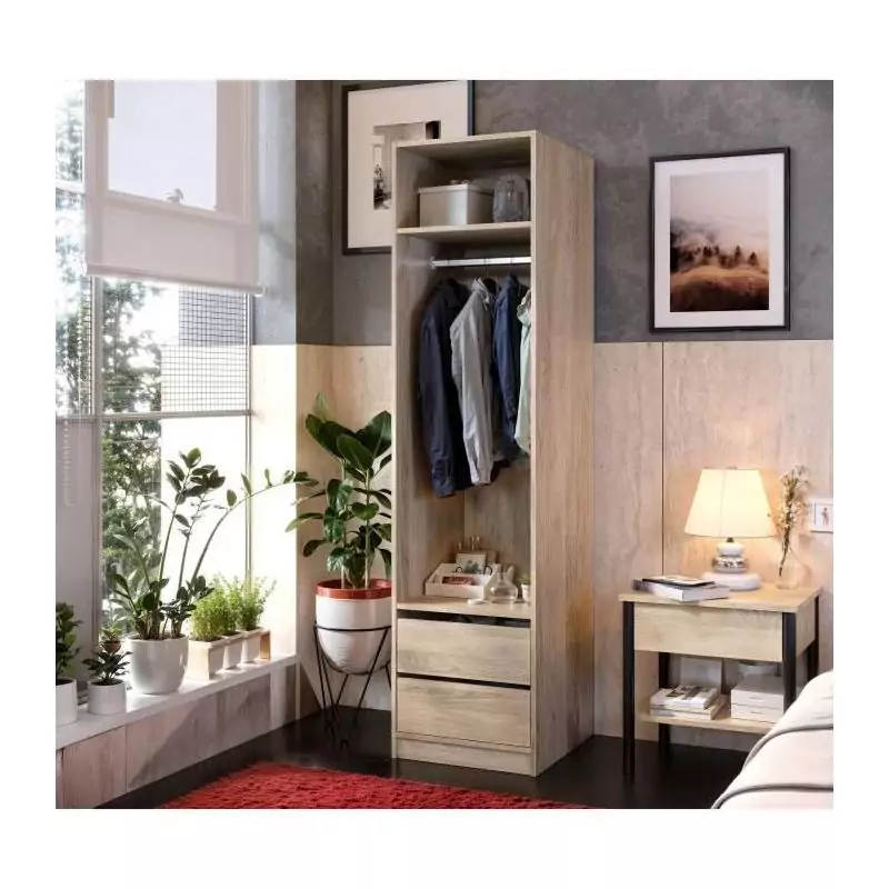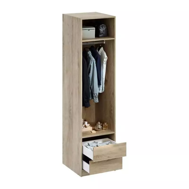 Dressing - Décor Chene - 2 tiroirs - 2 étageres - 1 tringle - L50 x P57 x H200 cm