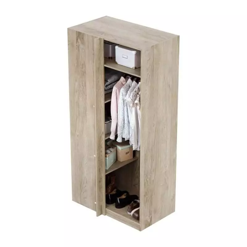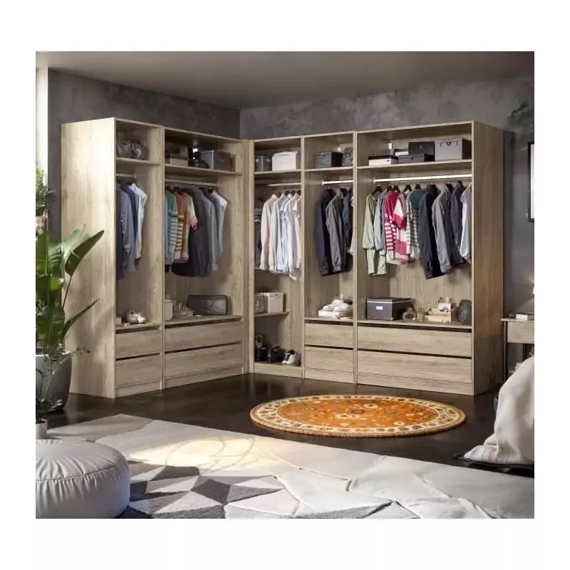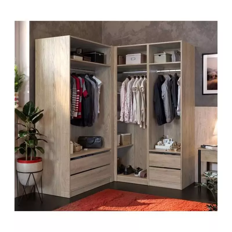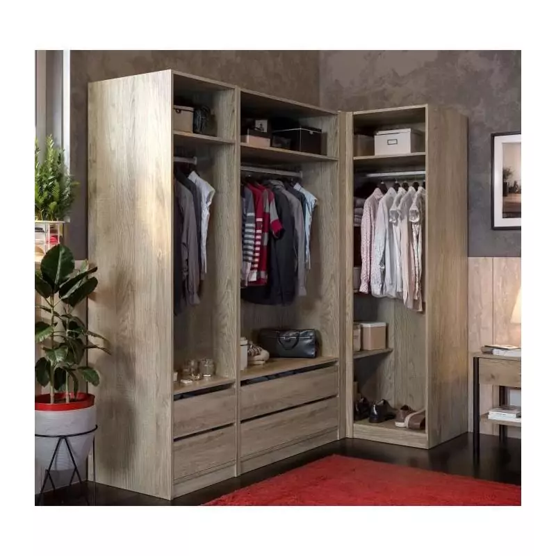 Module dressing d'angle - Décor chene - 3 étageres - 1 tringle a vetements - L100 x P66 x H200 cm