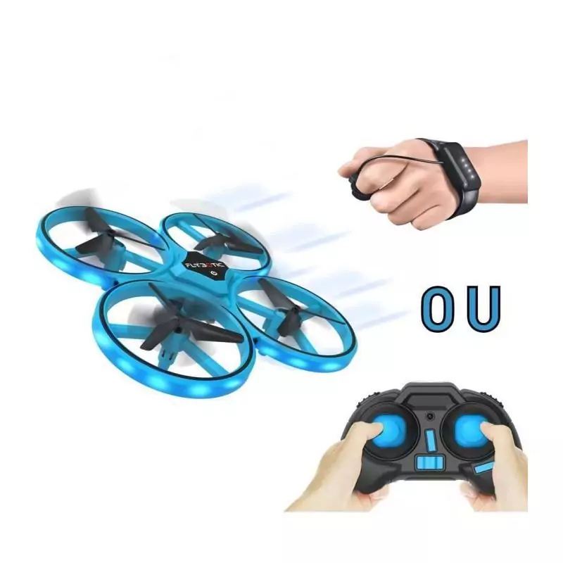 Mini drone lumineux avec double télécommande - FLYBOTIC - Looping 360 - Bleu