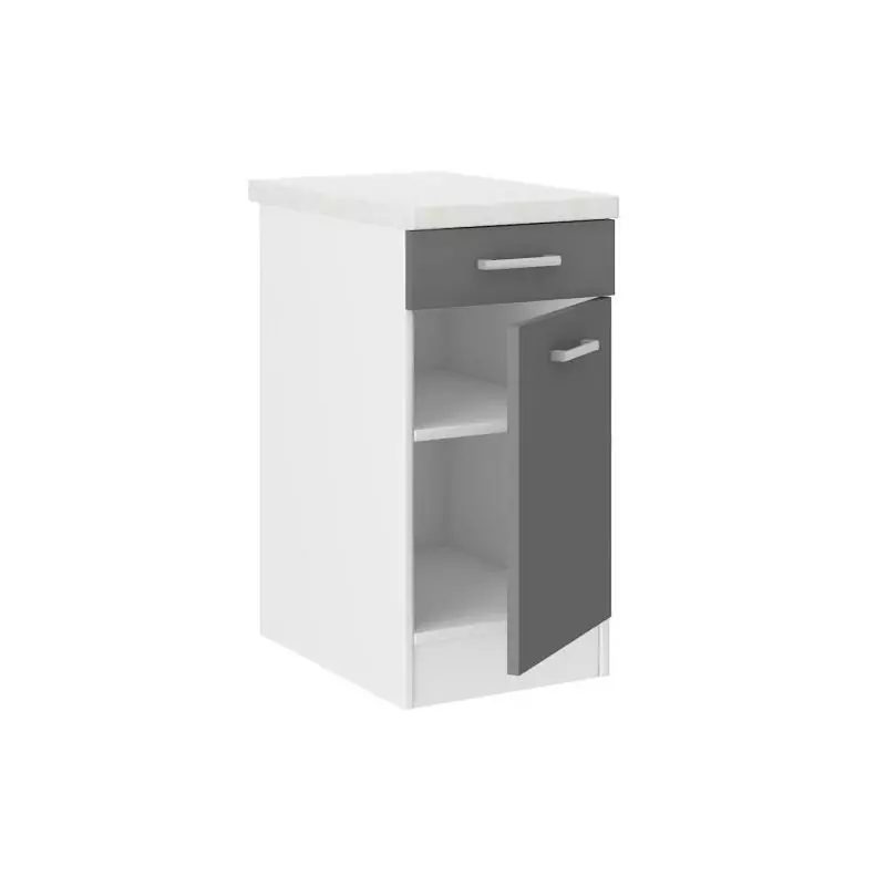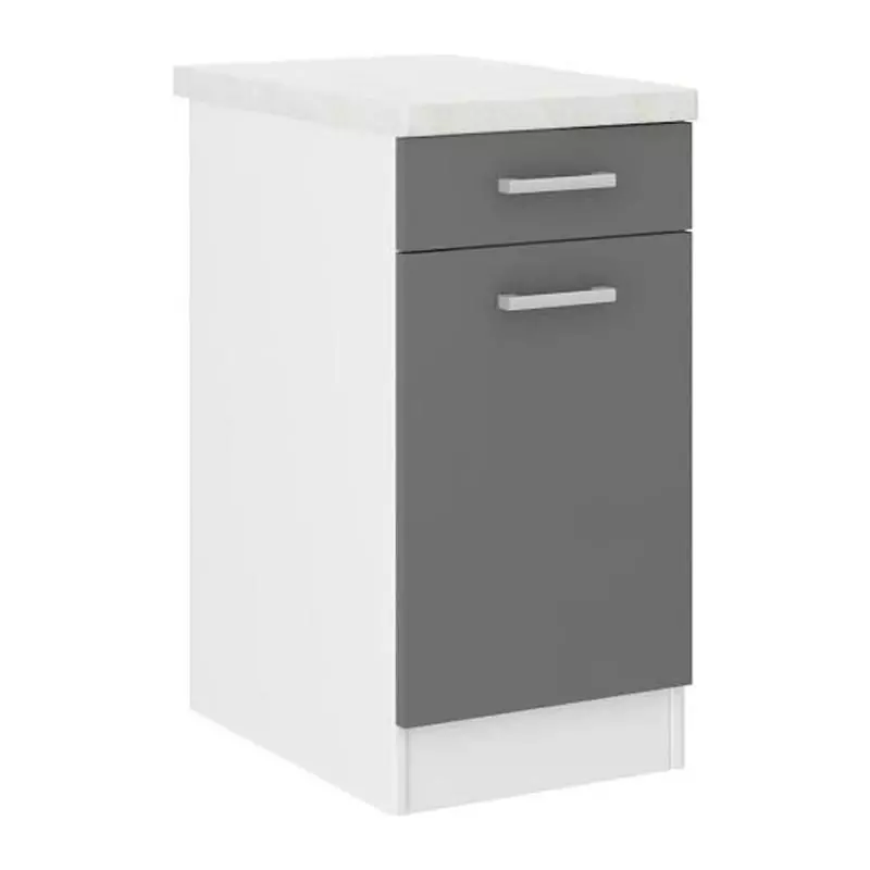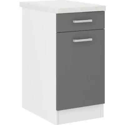 Le ULTRA Meuble bas de cuisine L 40 cm avec plan de travail inclus - Gris est un élément indispensable pour toute cuisine moderne. Avec ses dimensions compactes de 40 cm de large, ce meuble bas s'intègre parfaitement dans les espaces restreints tout en offrant un espace de rangement optimal.