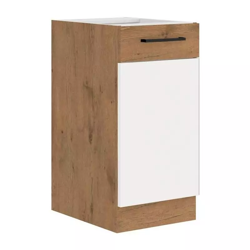 ROCK - Meuble bas - Mélaminé chene Lancelot et Blanc brillant - 40 cm - 1 porte battante - Plan de travail non inclus