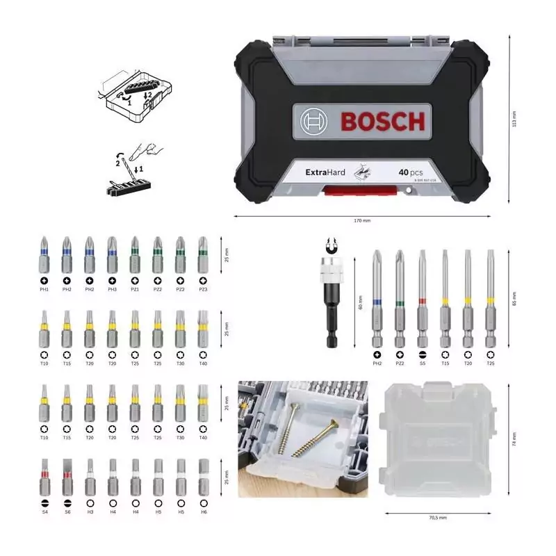 Embout de tournevis - Bosch Professional - 2607017464 - 40 pieces - Acier modifié S2 - Personnalisable