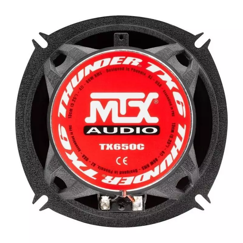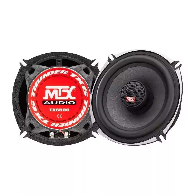 MTX TX650C Haut-parleurs voiture Coaxiaux 13cm 2 voies 80W RMS 4 châssis alu Tweeters néodyme dôme soie Membrane pulpe célul