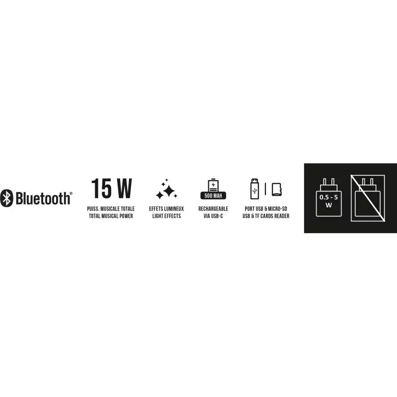 Que vous soyez à la maison, en déplacement ou en extérieur, cette enceinte bluetooth lumineuse vous assure une expérience musicale immersive et divertissante. Mettez de l'ambiance et créez des souvenirs mémorables avec la BIGBEN PARTY !