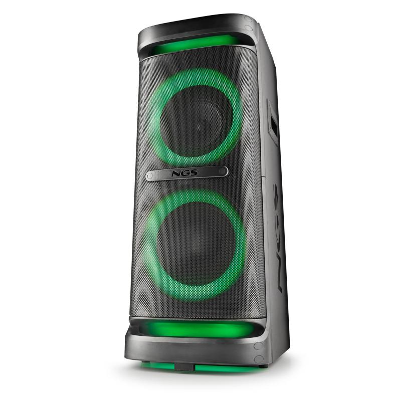 NGS WILD SPACE 2. Diamètre de haut parleur aigu (impérial): 2,54 cm (1"), Diamètre de pilote de subwoofer: 2,54 cm, Diamètre du woofer (impérial): 16,5 cm (6.5"). Puissance évaluée de RMS: 400 W, Puissance de crête en sortie (PMPO): 2000 W. Technologie de connectivité: Sans fil, Portée Bluetooth: 10 m. Type de produit: Enceinte portable stéréo, Couleur du produit: Noir, Conception du produit: Cylindre. Utilisation recommandée: Universel, Formats audio pris en charge: MP3, WAV, WMA