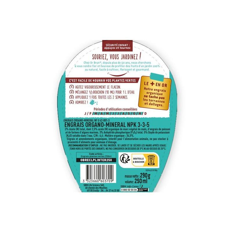 Engrais plantes vertes - OR BRUN - OBRECLPLINTER250 - 250 ml - Favorise la croissance - Fabriqué en France