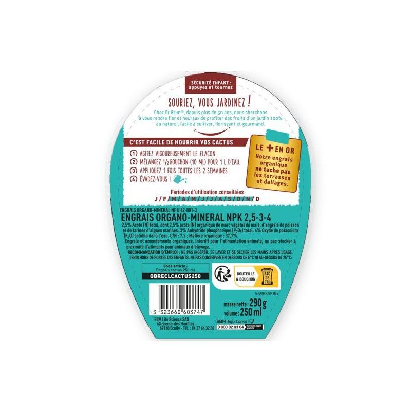 Engrais cactus & plantes grasses - OR BRUN - OBRECLCACTUS250 - 250 ml - Enrichit les plantes - Fabriqué en France