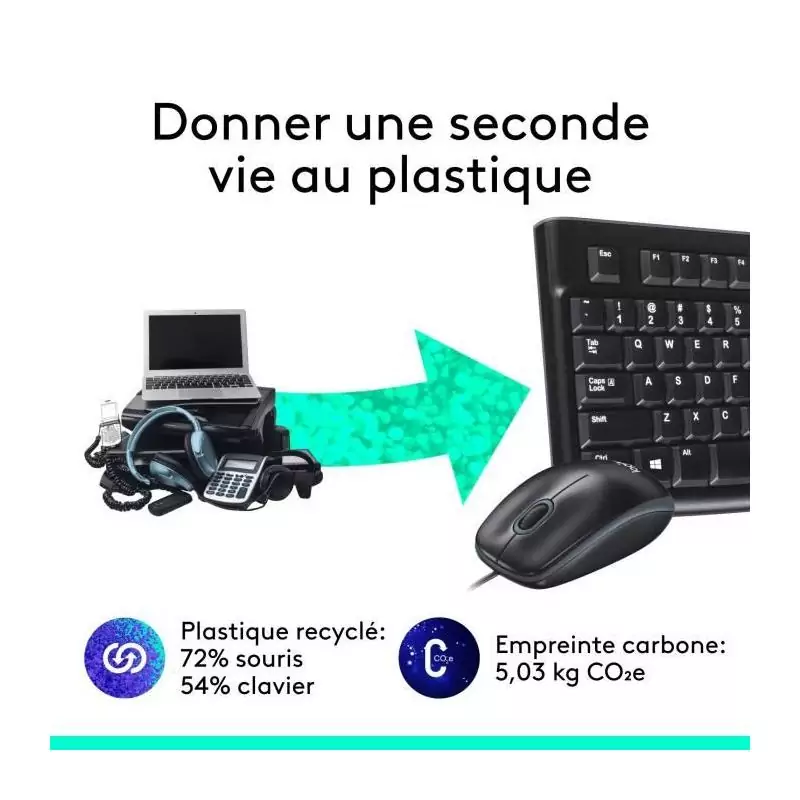 Ensemble Clavier Souris - Filaire - Logitech - MK120 - AZERTY - Noir