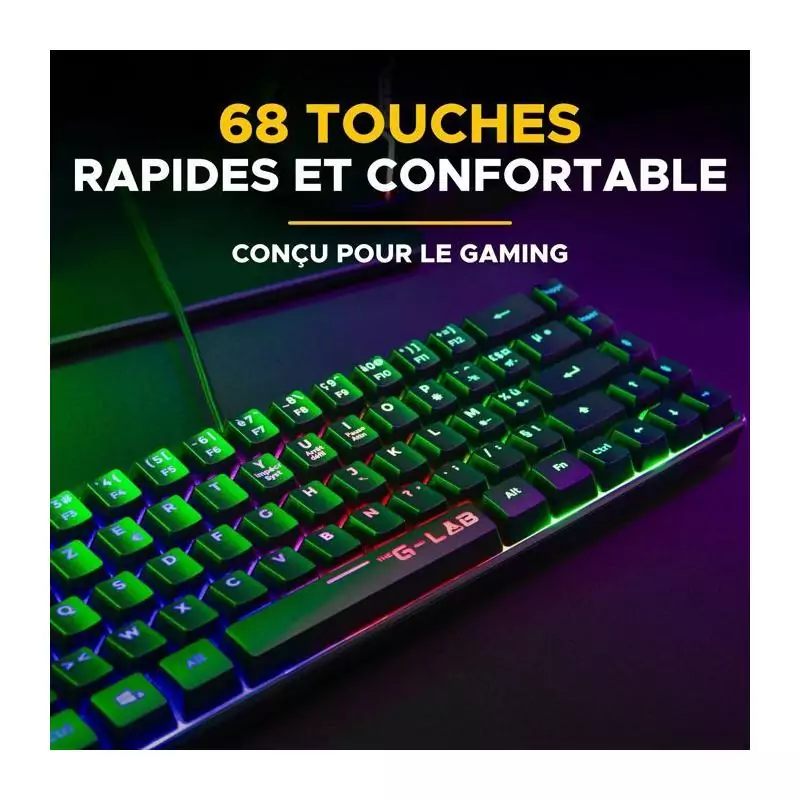 Pack gamer clavier souris filaire - THE G-LAB - Combo Hydrogen BKG - Clavier Azerty - Noir