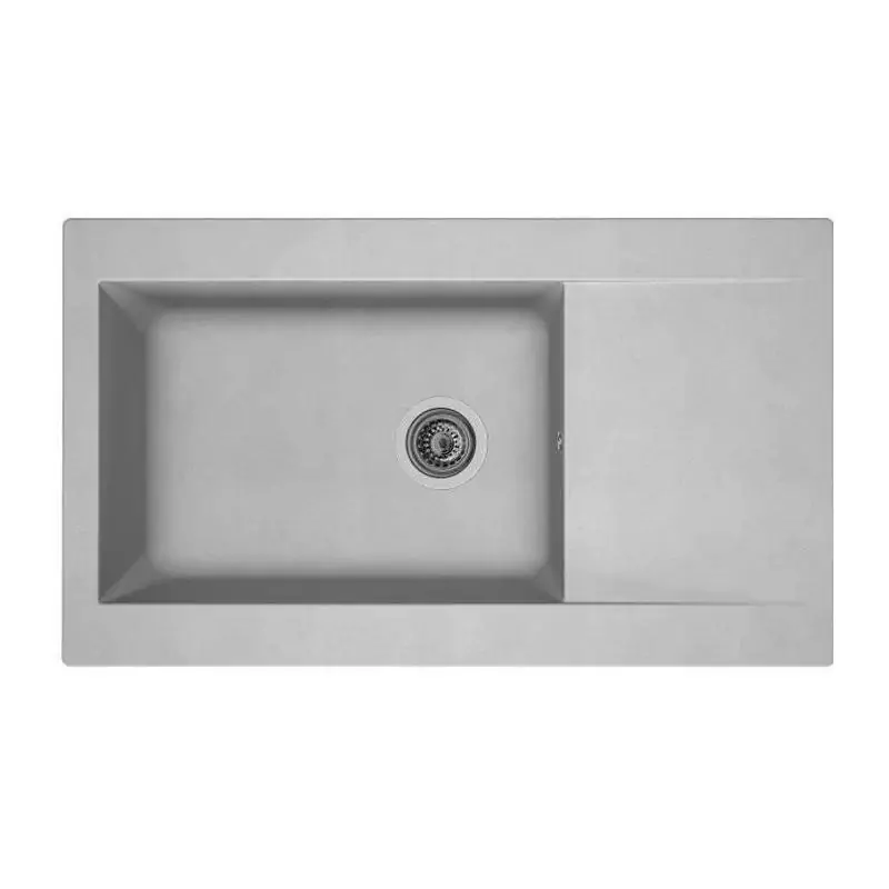 STRADOUR Evier cuisine a encastrer 1 grand bac + 1 égouttoir Einna - Résine - 86 x 50 cm - Gris platinium