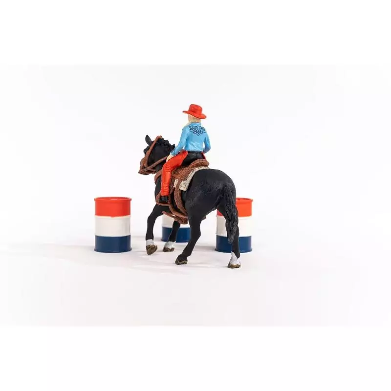 Figurine Cowgirl et Tonneaux de Racing, avec figurine et cheval, Schleich 42576 Farm World