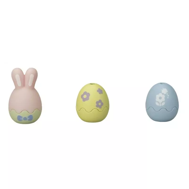 Les frères et sœurs Lapin Marguerite sont articulés et habillés avec soin. Leurs vêtements exclusifs, peuvent être enlevés et remis à loisir. Les œufs s'ouvrent et se referment pour y cacher des bonbons à l'intérieur. C'est parti pour la chasse aux œufs !
