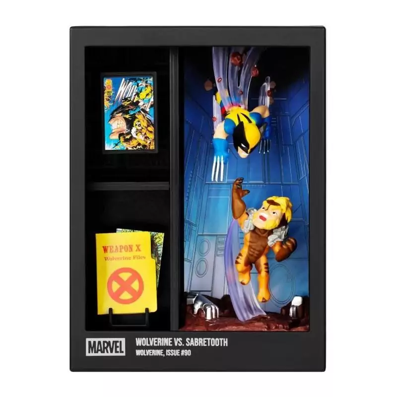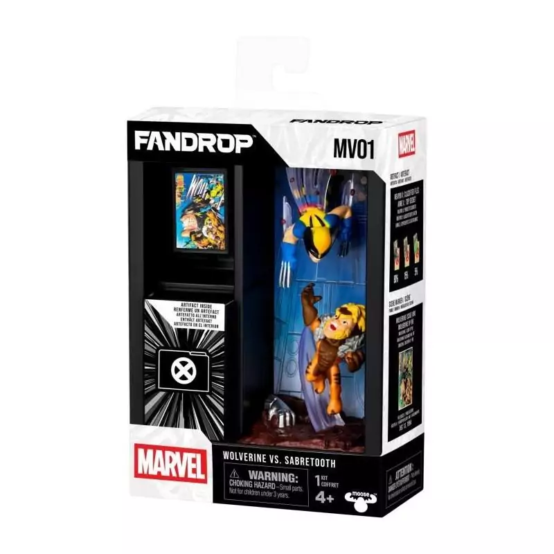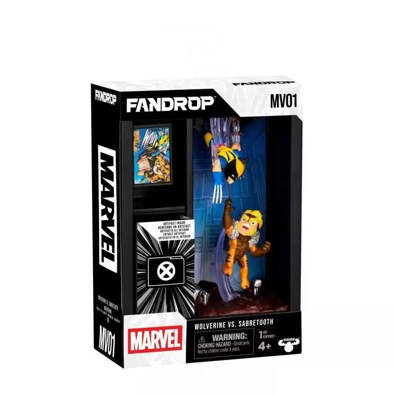 Ce produit de la collaboration entre FANDROP et Star Wars est présenté dans une vitrine spécialement conçue pour recréer la scène culte du duel entre Wolverine et Dents-de-Sabre. La vitrine ajoute une touche de réalisme à la figurine, mettant en valeur chaque détail des deux combattants.