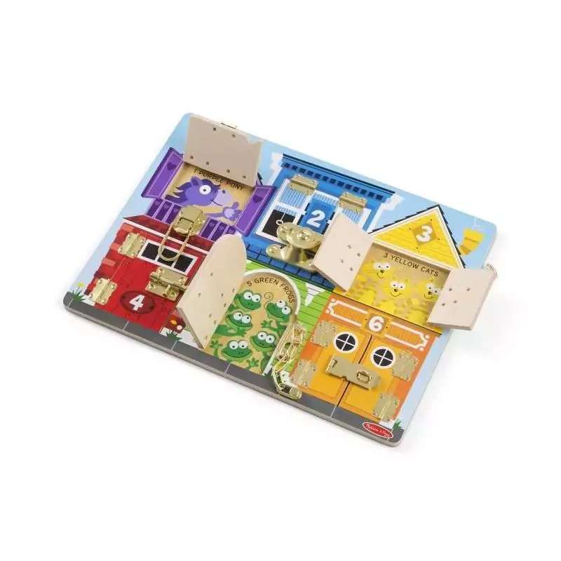 Que ce soit à la maison, chez la nounou ou chez les grands-parents, la Planche d'activités avec loquets de Mélissa & Doug garantit des heures de jeu et d'apprentissage pour les enfants dès 3 ans. Offrez-leur ce jouet original et captivant qui les occupera de manière intelligente et divertissante !