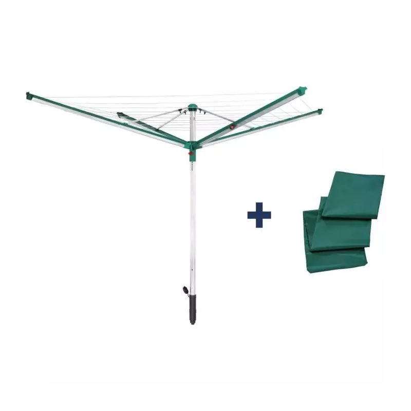 Le Séchoir parapluie Linomatic 500 Deluxe Cover 82007 Leifheit - Etendoir extérieur rotatif 50 metres- Fils rétractables douille
