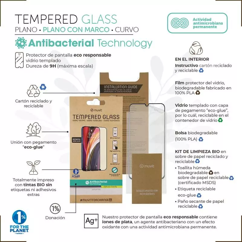 Ce film protecteur est facile à installer et ne laisse pas de résidus collants une fois retiré. Il offre une clarté exceptionnelle pour une expérience visuelle optimale et une sensation tactile naturelle. Protégez votre téléphone portable avec style et tranquillité d'esprit grâce au Film Protecteur pour Téléphone Portable Muvit for Change.