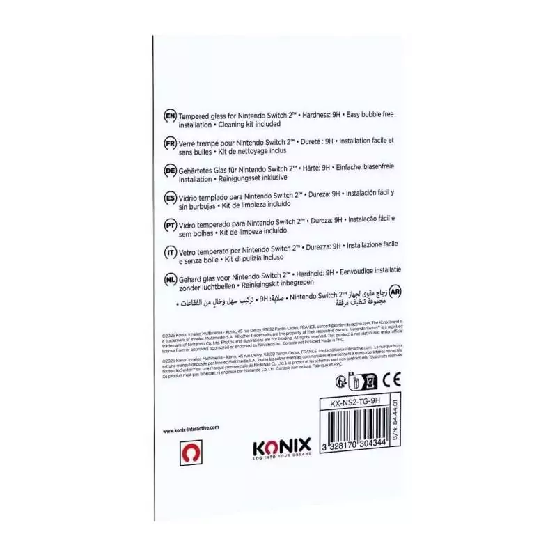 Avec la protection d'écran en verre trempé KONIX pour Nintendo Switch 2, vous pouvez jouer en toute sérénité, sachant que votre écran est parfaitement protégé. Profitez de vos jeux préférés sans vous soucier des rayures, des traces de doigts ou des chocs qui pourraient endommager votre console. Offrez-lui la protection qu'elle mérite avec ce film de protection d'écran de haute qualité.