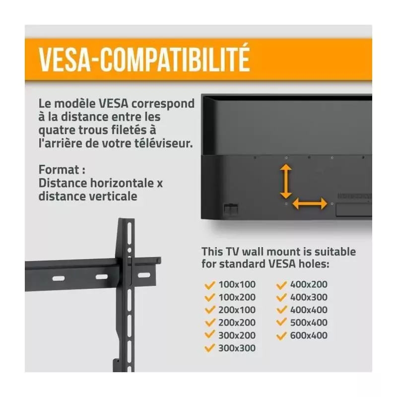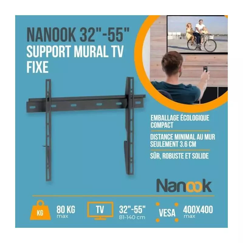 Support Mural TV NANOOK - Ultra Plat - 32-55 Pouces - pour télés LCD et (O)LED - Noir