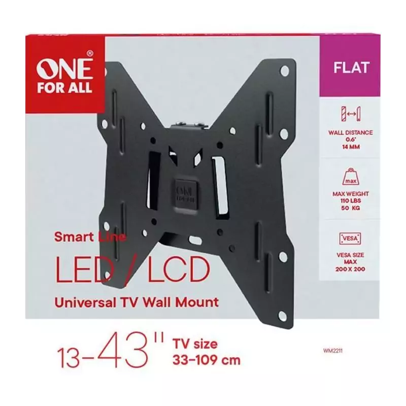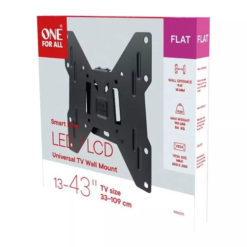 ONE FOR ALL WM2211 Support mural pour TV de 33 a 109cm (13-43) - Poids max. : 50kgs - Fixe - Garantie 10 ans