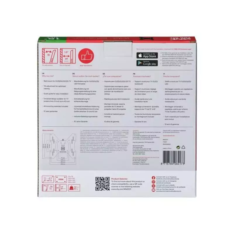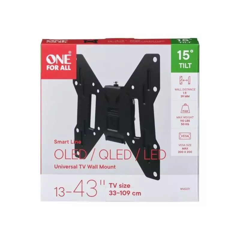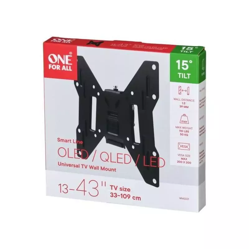 ONE FOR ALL WM2221 Support TV Smart 33-109 cm (13-43'') - Poids max. : 50kgs - Inclinable 15° - Garantie 10 ans