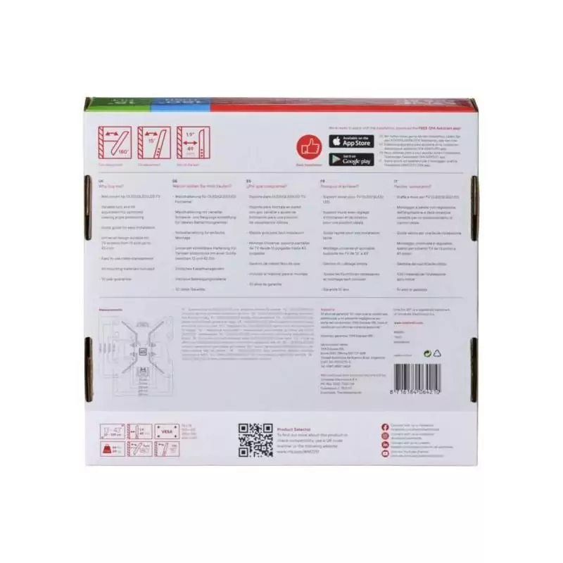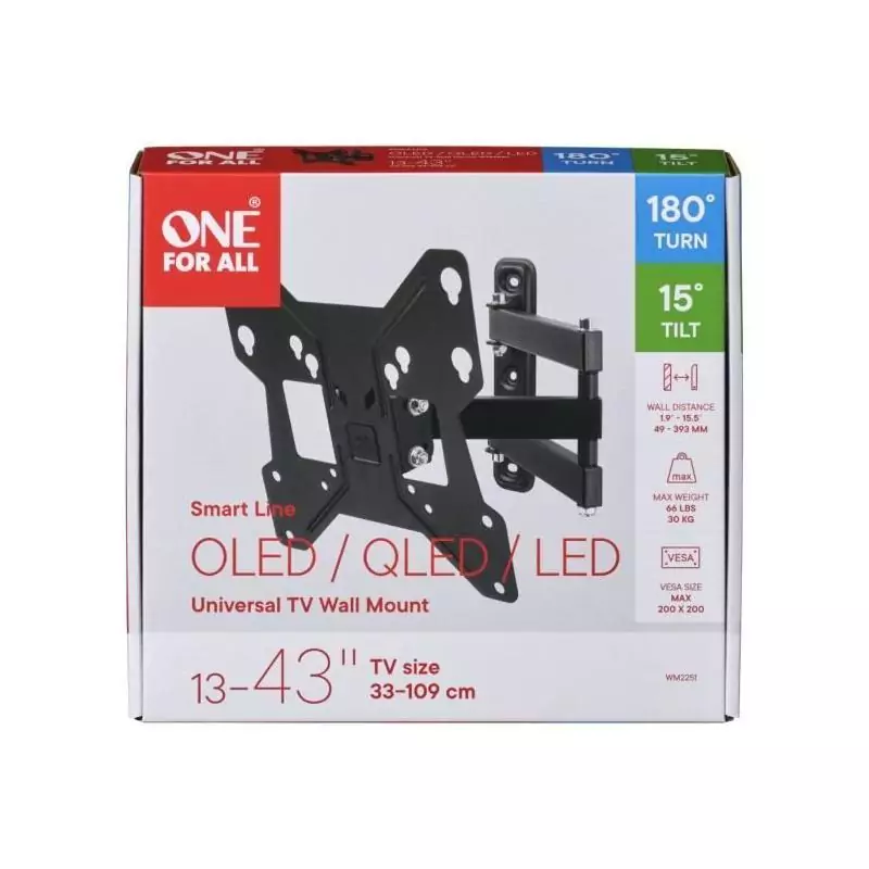 ONE FOR ALL WM2241 Support mural inclinable (15°) et orientable (180°) pour TV de 13 a 43 (33 a 109cm) - Poids max : 30kg