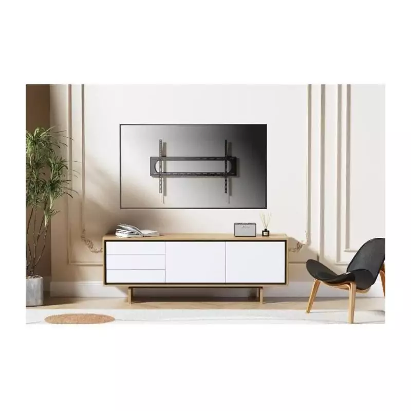 Ce support TV fixe est compatible avec la plupart des modèles de téléviseurs disponibles sur le marché, offrant une polyvalence exceptionnelle pour répondre à vos besoins spécifiques. Son design mince et discret permet de libérer de l'espace au sol, offrant une solution pratique pour optimiser votre espace de vie.