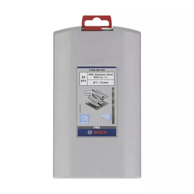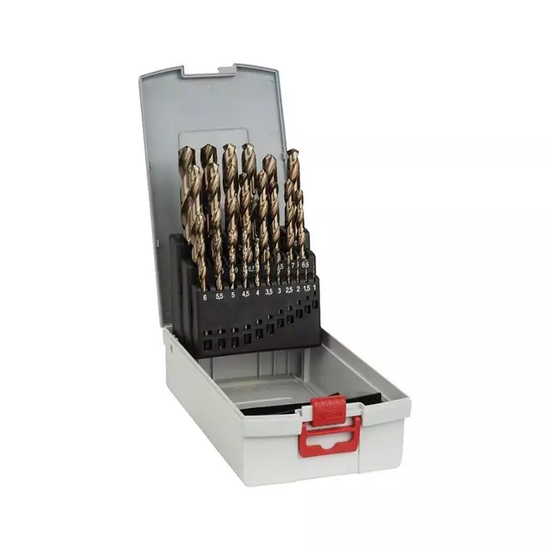 Le Set de forets ProBox HSS-Co, 1-13mm, 135°, 25 - BOSCH est un ensemble de forets de haute qualité conçu pour répondre aux besoins des professionnels exigeants. Ce set polyvalent comprend une gamme de forets allant de 1mm à 13mm, ce qui en fait l'outil idéal pour une variété de projets de perçage.
